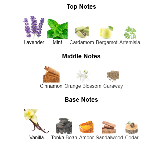 Top Notes: It begins with a vibrant blend of mint, lavender, and bergamot. The cool, refreshing mint invigorates the senses, while lavender adds a soothing, aromatic touch. Bergamot provides a bright, citrusy edge, creating an energizing and uplifting opening. Imagine the crisp morning air as you step out into the world, full of vitality.