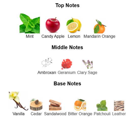 Top Notes: Your senses awaken with an electrifying blend of Italian lemon, mandarin, and candied apple. The citrus notes burst with freshness, their bright and zesty character instantly invigorating. Candied apple adds a hint of playful sweetness, creating a dynamic contrast that is both youthful and seductive—like the first spark of attraction.